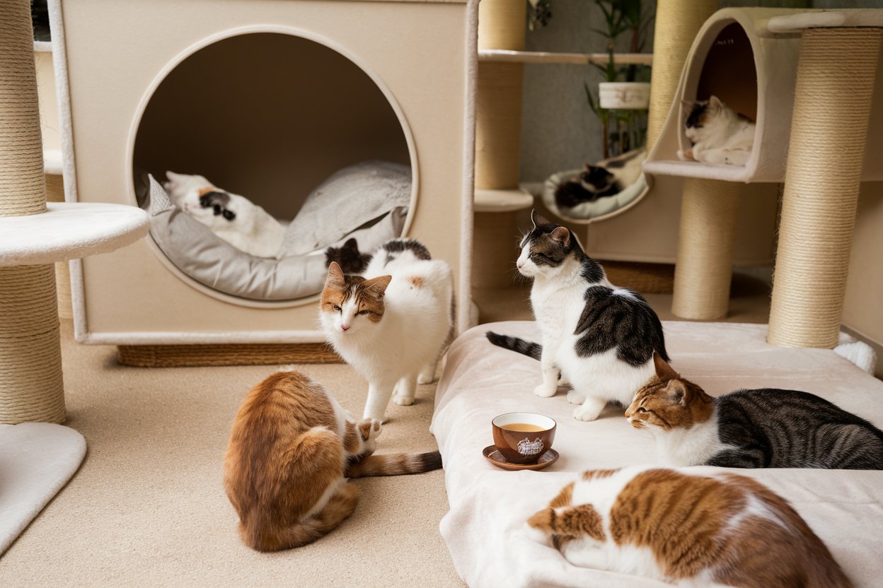 Step into a serene space where calm and affectionate cats await to provide you with moments of relaxation and warmth. In this cozy environment, you can enjoy the simple pleasure of feeding the cats and receive gentle purrs in return, all while sipping a comforting cup of tea. The peaceful ambiance is designed to melt away your stress, allowing you to reconnect with yourself in a truly calming setting.
